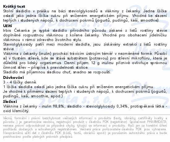 Stolní sladidlo v prášku na bázi steviolglykosidů a vlákniny z čekanky. Jedna lžička osladí jako jedna lžička cukru při sníženém energetickém příjmu. Vhodné ke slazení teplých i studených nápojů, k dochucení pokrmů (jogurtů, pudingů, kaší, smoothie).