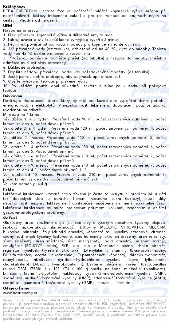BEBA EXPERTpro Lactose free je počáteční mléčná kojenecká výživa určená při nesnášenlivosti laktózy (mléčného cukru) a pro realimentaci po průjmech nejen na cestách. Vhodná od narození.