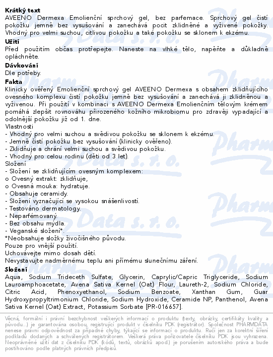 AVEENO Dermexa Emolienční sprchový gel, bez parfemace. Sprchový gel čistí pokožku jemně bez vysušování a zanechává pocit zklidněné a vyživené pokožky. Vhodný pro velmi suchou, citlivou pokožku a také pokožku se sklonem k ekzému.