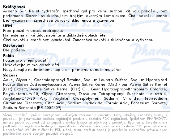 Aveeno Skin Relief hydratační sprchový gel pro velmi suchou, citlivou pokožku, bez parfemace. Složení se zklidňujícím trojitým ovesným komplexem. Čistí pokožku jemně bez vysušování. Zanechává pokožku zklidněnou a vyživenou.