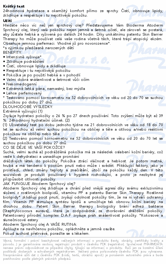 BIODERMA Atoderm sprchový olej je každodenní dermatologický čisticí a zklidňující sprchový olej, který zajišťuje jemné čištění velmi suché a podrážděné citlivé pokožky.
