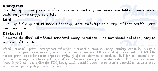 Přírodní sprchová pasta s vůní bazalky a verbeny se sametově lehkou našlehanou texturou jemně umyje celé tělo.