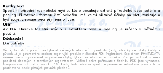 Speciální přírodní kosmetické mýdlo, které obsahuje extrakt přírodního ovsa setého a peeling. Přirozenou formou čistí pokožku, má velmi příznivé účinky na pleť, tonizuje a hydratuje, zlepšuje péči zejména o ruce.