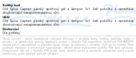 Old Spice Captain pánský sprchový gel a šampon 3v1 čistí pokožku a zanechává dlouhotrvající nezapomenutelnou vůni.