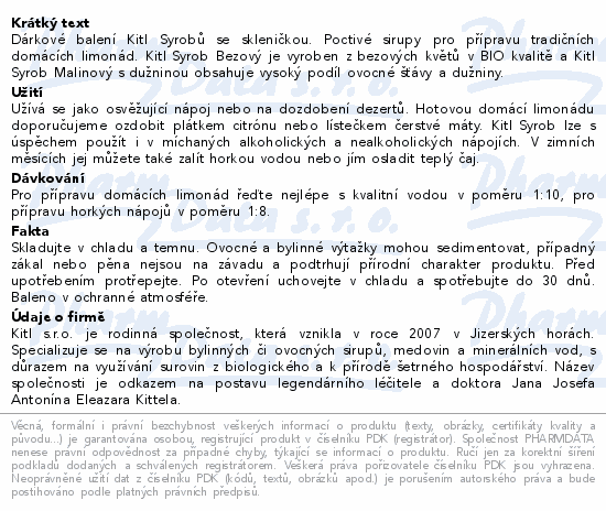 Kitl Syrob Bez+Malina 2x500ml dár.balení