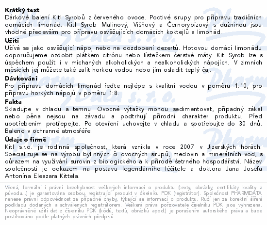 Dárkové balení Kitl Syrobů z červeného ovoce. Poctivé sirupy pro přípravu tradičních domácích limonád. Kitl Syrob Malinový, Višňový a Černorybízový s dužninou jsou vhodné především pro přípravu osvěžujících domácích koktejlů a limonád.