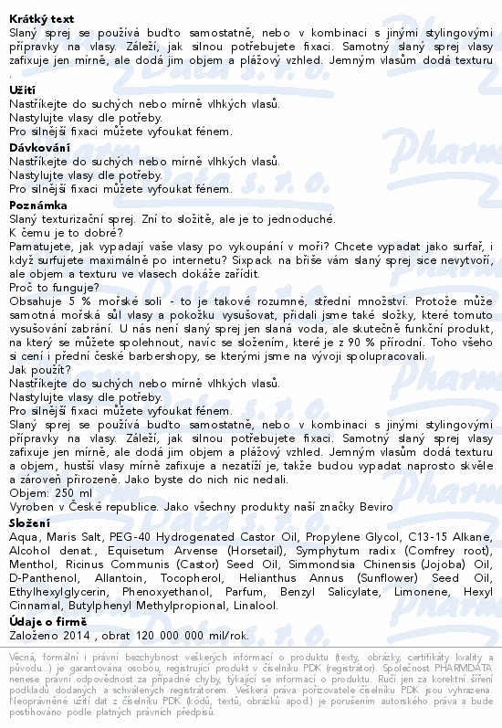Beviro Sea Salt slaný sprej střední fixace 250ml