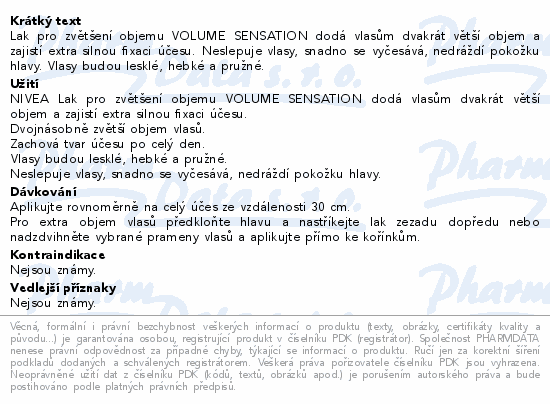 Lak pro zvětšení objemu VOLUME SENSATION dodá vlasům dvakrát větší objem a zajistí extra silnou fixaci účesu. Neslepuje vlasy, snadno se vyčesává, nedráždí pokožku hlavy. Vlasy budou lesklé, hebké a pružné.