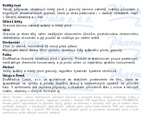 Tekutý přípravek obsahující mletý plod z gravioly (anona ostnitá), rostliny původem z tropických jihoamerických pralesů, která je dnes pěstovaná i v dalších oblastech, např. v Severní Americe a v Asii.