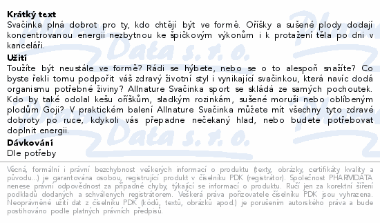 Allnature Směs svačinka Sport 60g