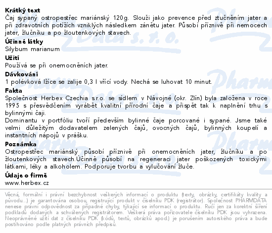 HERBEX Ostropestřec mariánský bal.120g