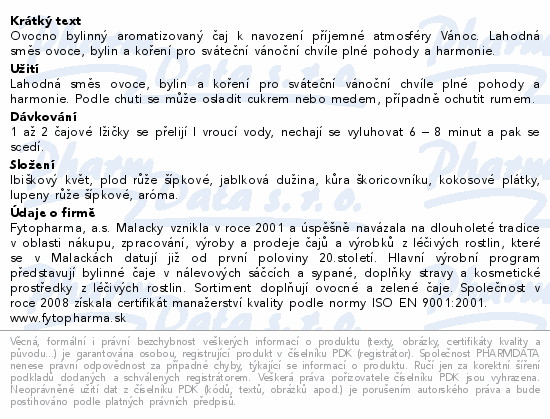 Ovocno bylinný aromatizovaný čaj k navození příjemné atmosféry Vánoc. Lahodná směs ovoce, bylin a koření pro sváteční vánoční chvíle plné pohody a harmonie.