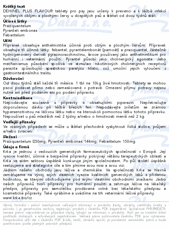DEHINEL PLUS FLAVOUR tablety pro psy jsou určeny k prevenci a k léčbě infekcí vyvolaných oblými a plochými červy u dospělých psů a štěňat od dvou týdnů stáří.