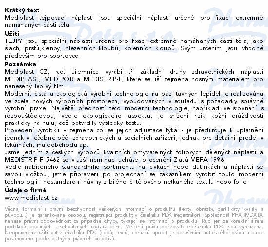 Mediplast tejpovací náplasti jsou speciální náplasti určené pro fixaci extrémně namáhaných částí těla.