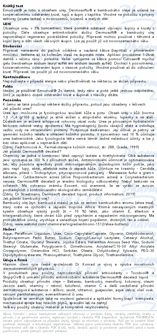 S obsahem urey, Dermosoftu® a bambuckého oleje je přípravek určený ke konzervativnímu odstranění krust, lupů a šupin z kapilitia. Vhodný na pokožku s projevy seborey (crusta lactea) u novorozenců, kojenců a malých dětí.