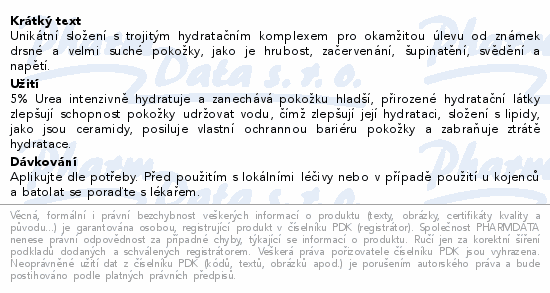 Eucerin UreaRepair PLUS Tělové mléko 5% Urea je vysoce účinné tělové mléko určené pro velmi suchou, hrubou a napjatou pokožku. Díky svému unikátnímu složení poskytuje intenzivní hydrataci, zmírňuje svědění a posiluje kožní bariéru, což vede k okamžité úlevě a dlouhodobému zlepšení stavu pokožky.