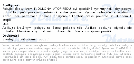 INDULONA Atopiredu ošetřující tělový krém 200ml