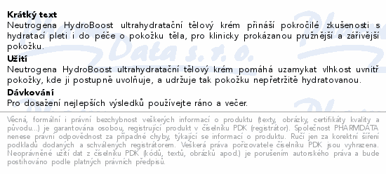 Neutrogena HydroBoost ultrahydratační tělový krém přináší pokročilé zkušenosti s hydratací pleti i do péče o pokožku těla, pro klinicky prokázanou pružnější a zářivější pokožku.
