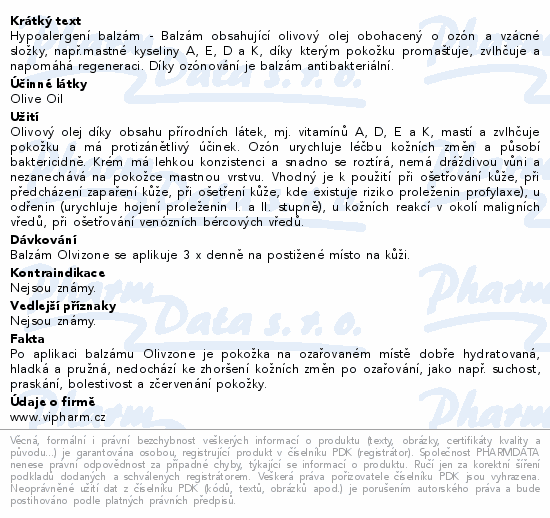Hypoalergení balzám - Balzám obsahující olivový olej obohacený o ozón a vzácné složky, např.mastné kyseliny A, E, D a K, díky kterým pokožku promašťuje, zvlhčuje a napomáhá regeneraci. Díky ozónování je balzám antibakteriální.