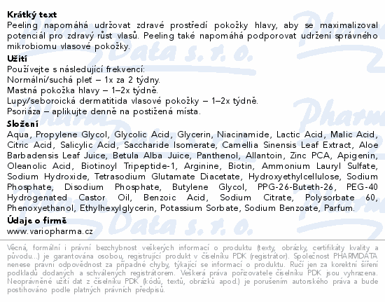 Peeling napomáhá udržovat zdravé prostředí pokožky hlavy, aby se maximalizoval potenciál pro zdravý růst vlasů. Peeling také napomáhá podporovat udržení správného mikrobiomu vlasové pokožky.