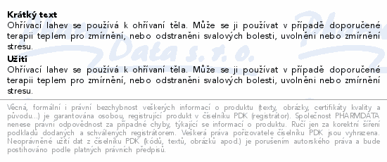 Ohřívací lahev se používá k ohřívaní těla. Může se ji používat v případě doporučené terapii teplem pro zmírnění, nebo odstraněni svalových bolesti, uvolněni nebo zmírnění stresu.