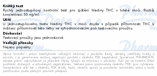 Rychlý jednostupňový kontrolní test pro zjištění hladiny THC v lidské moči. Rozliší koncentraci 50 ng/ml.