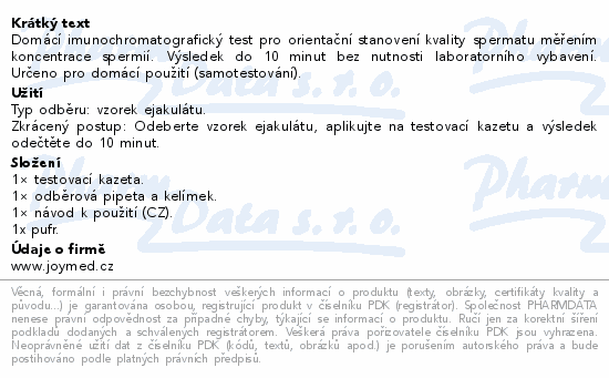 JoyTest Mužská plodnost (SP-10) Rapid test 1ks