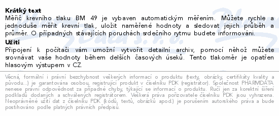 Měřič krevního tlaku BM 49 je vybaven automatickým měřením. Můžete rychle a jednoduše měřit krevní tlak, uložit naměřené hodnoty a sledovat jejich průběh a průměr. O případných stávajících poruchách srdečního rytmu budete informováni.