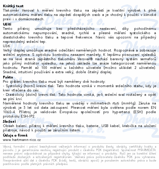 Tlakoměr Veroval® k měření krevního tlaku na zápěstí je kvalitní výrobek k plně automatickému měření tlaku na zápěstí dospělých osob a je vhodný k použití v klinické praxi i v domácnostech.