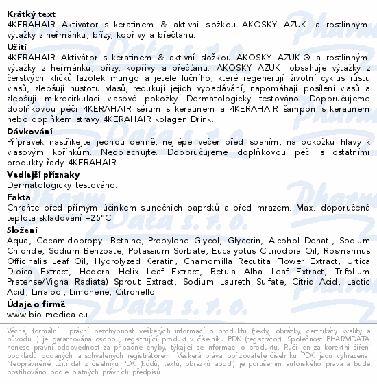 4KERAHAIR Aktivátor s keratinem & aktivní složkou AKOSKY AZUKI a rostlinnými výtažky z heřmánku, břízy, kopřivy a břečťanu.