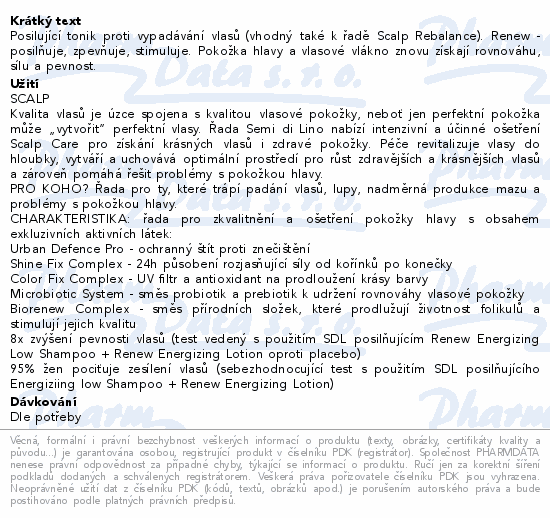 Posilující tonik proti vypadávání vlasů (vhodný také k řadě Scalp Rebalance). Renew - posilňuje, zpevňuje, stimuluje. Pokožka hlavy a vlasové vlákno znovu získají rovnováhu, sílu a pevnost.