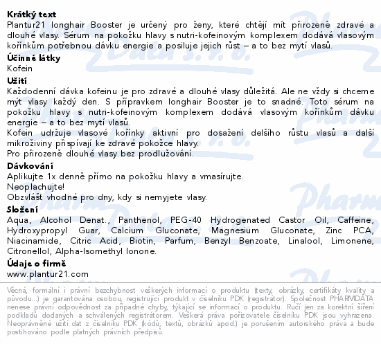 Plantur21 longhair Booster je určený pro ženy, které chtějí mít přirozeně zdravé a dlouhé vlasy. Sérum na pokožku hlavy s nutri-kofeinovým komplexem dodává vlasovým kořínkům potřebnou dávku energie a posiluje jejich růst – a to bez mytí vlasů.