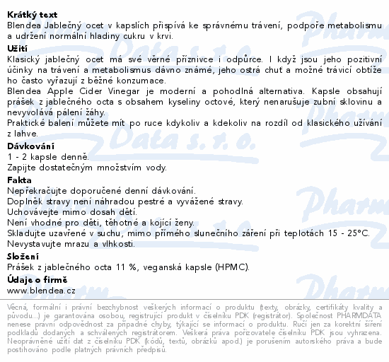 Blendea Jablečný ocet v kapslích přispívá ke správnému trávení, podpoře metabolismu a udržení normální hladiny cukru v krvi.