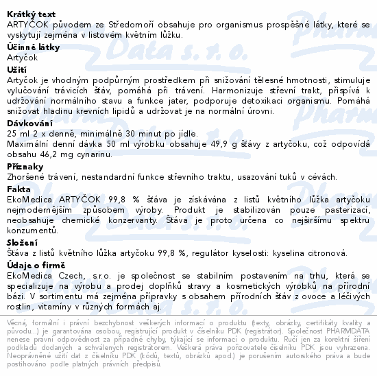 Artyčok šťáva 1000ml+dárek Artyčok cps.30EkoMedica