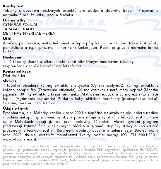 Tobolky s obsahem rostlinných extraktů pro podporu dobrého trávení. Přispívají k normální funkci žaludku, jater a žlučníku.