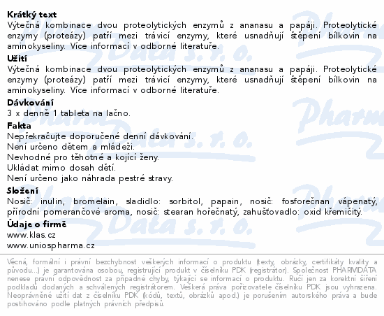 Výtečná kombinace dvou proteolytických enzymů z ananasu a papáji. Proteolytické enzymy (proteázy) patří mezi trávicí enzymy, které usnadňují štěpení bílkovin na aminokyseliny. Více informací v odborné literatuře.