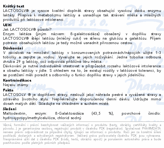 LACTOSOLV® je vysoce kvalitní doplněk stravy obsahující vysokou dávku enzymu laktázy. Přispívá k metabolizmu laktózy a usnadňuje tak strávení mléka a mléčných produktů při laktózové intoleranci.