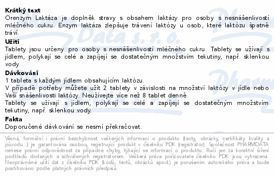 Orenzym Laktáza je doplněk stravy s obsahem laktázy pro osoby s nesnášenlivostí mléčného cukru. Enzym laktáza zlepšuje trávení laktózy u osob, které laktózu špatně tráví.