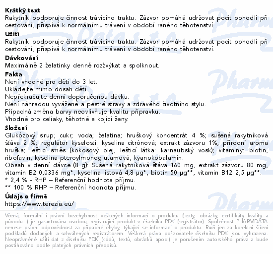 Rakytník podporuje činnost trávicího traktu. Zázvor pomáhá udržovat pocit pohodlí při cestování, přispívá k normálnímu trávení v období raného těhotenství.