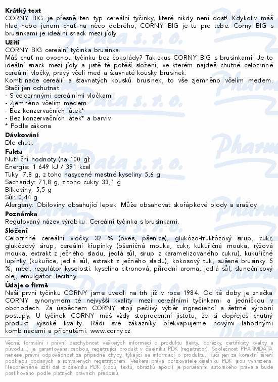 CORNY BIG je přesně ten typ cereální tyčinky, které nikdy není dost! Kdykoliv máš hlad nebo jenom chuť na něco dobrého, CORNY BIG je tu pro tebe. Corny BIG s brusinkami je ideální snack mezi jídly.