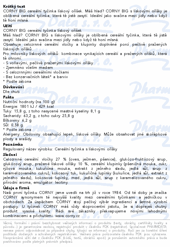 CORNY BIG cereální tyčinka lískový oříšek. Máš hlad? CORNY BIG s lískovými oříšky je oblíbená cereální tyčinka, která tě jistě zasytí. Ideální jako svačina mezi jídly nebo když tě honí mlsná.