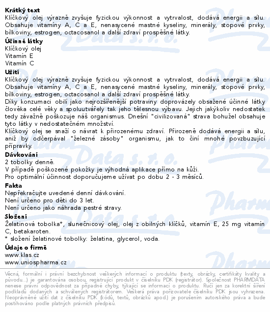 Klas Klíčkový olej s betakaroten a vit.C+E tob.60