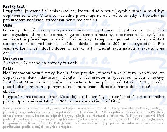 L-tryptofan je esenciální aminokyselina, kterou si tělo neumí vyrobit samo a musí být doplněna ze stravy. V těle se následně přeměňuje na další důležité látky. L-tryptofan je prekurzorem například serotoninu nebo melatoninu.