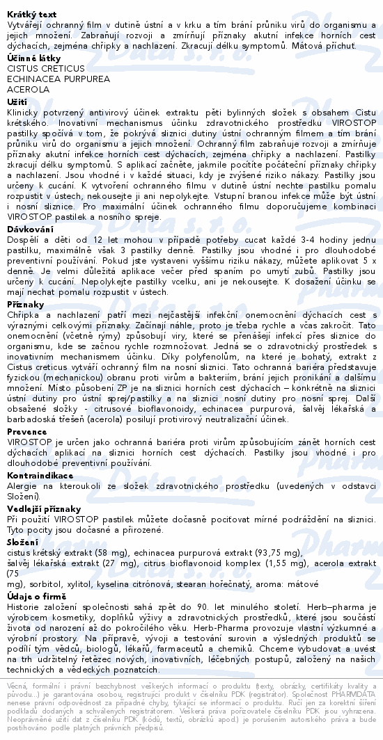 Vytvářejí ochranný film v dutině ústní a v krku a tím brání průniku virů do organismu a jejich množení. Zabraňují rozvoji a zmírňují příznaky akutní infekce horních cest dýchacích, zejména chřipky a nachlazení. Zkracují délku symptomů. Mátová příchuť.
