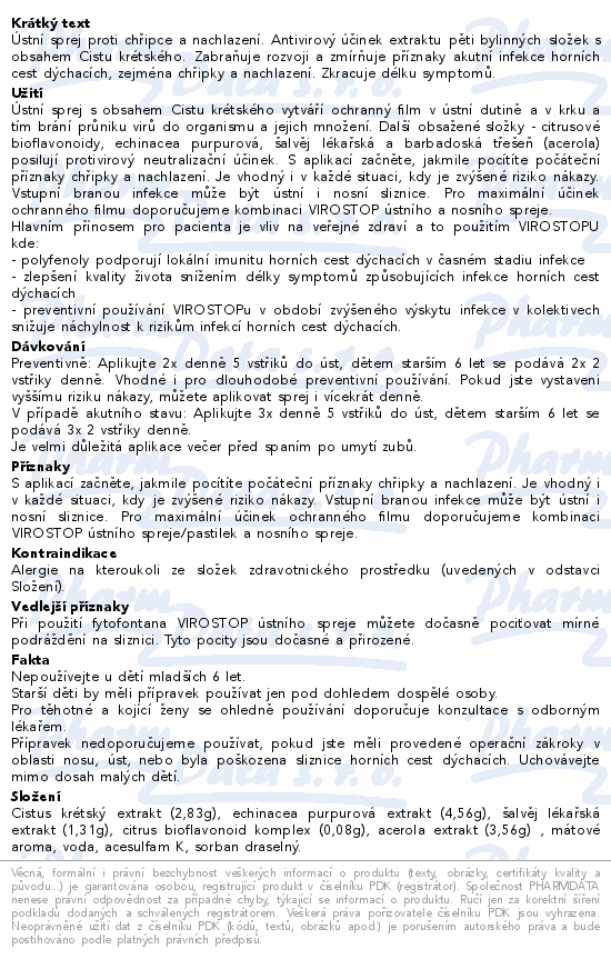 Ústní sprej proti chřipce a nachlazení. Antivirový účinek extraktu pěti bylinných složek s obsahem Cistu krétského. Zabraňuje rozvoji a zmírňuje příznaky akutní infekce horních cest dýchacích, zejména chřipky a nachlazení. Zkracuje délku symptomů.