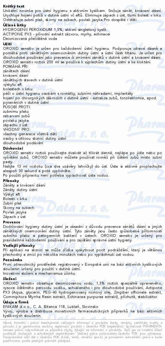 OROXID sensitiv roztok 250 ml pro ústní hygienu