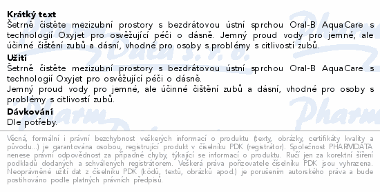 Šetrně čistěte mezizubní prostory s bezdrátovou ústní sprchou Oral-B AquaCare s technologií Oxyjet pro osvěžující péči o dásně. Jemný proud vody pro jemné, ale účinné čištění zubů a dásní, vhodné pro osoby s problémy s citlivostí zubů.