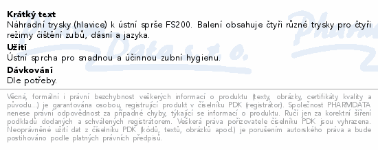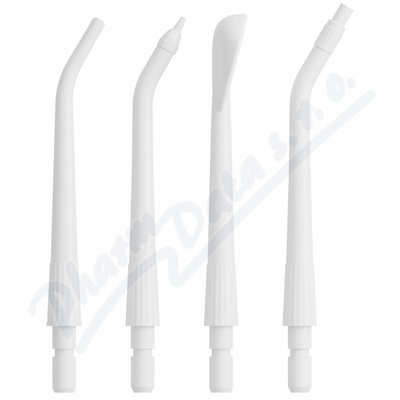 Náhradní trysky (hlavice) k ústní sprše FS200. Balení obsahuje čtyři různé trysky pro čtyři režimy čištění zubů, dásní a jazyka.