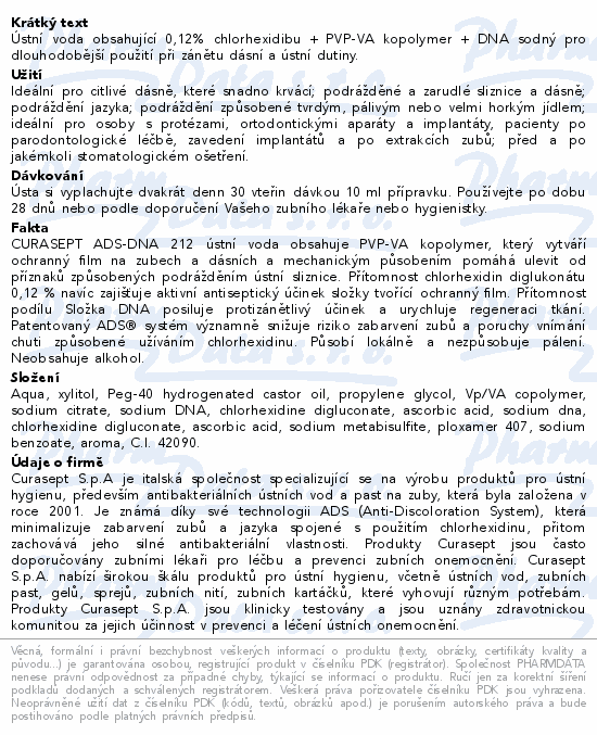 CURASEPT ADS DNA 212 + PVP-VA Ústní voda 200ml