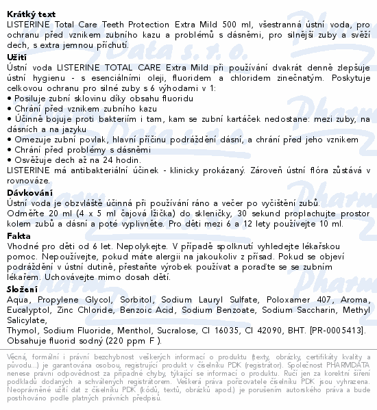 LISTERINE Total Care Teeth Protection Extra Mild 500 ml, všestranná ústní voda, pro ochranu před vznikem zubního kazu a problémů s dásněmi, pro silnější zuby a svěží dech, s extra jemnou příchutí.